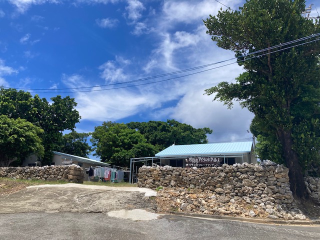 鳩間島 の Cafe 『 群りか星 』 は水色の屋根と白いサイディング壁が目印です