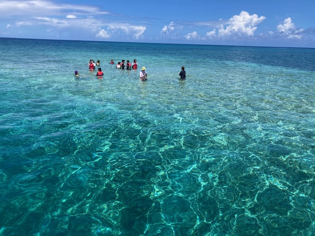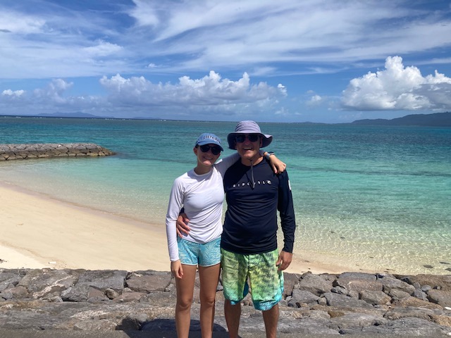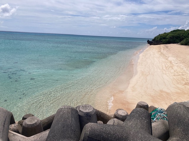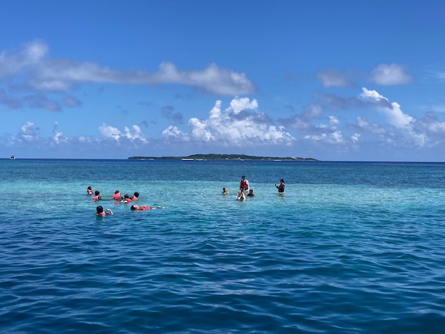 遠いアルゼンチンからMさん親子もツアーに参加してくれました 島内散策 鳩間小中学校前のビーチ