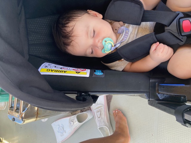 ご両親のシュノーケリング中は船でずっと寝ていました