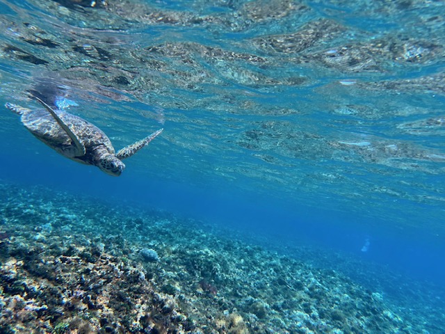 Mabel がアオウミガメを見つけて 皆様にご覧いただけました