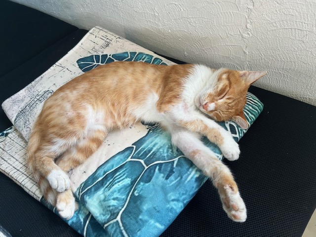 毎日うちに遊びに来る近所の猫 マイケル君はお昼寝中