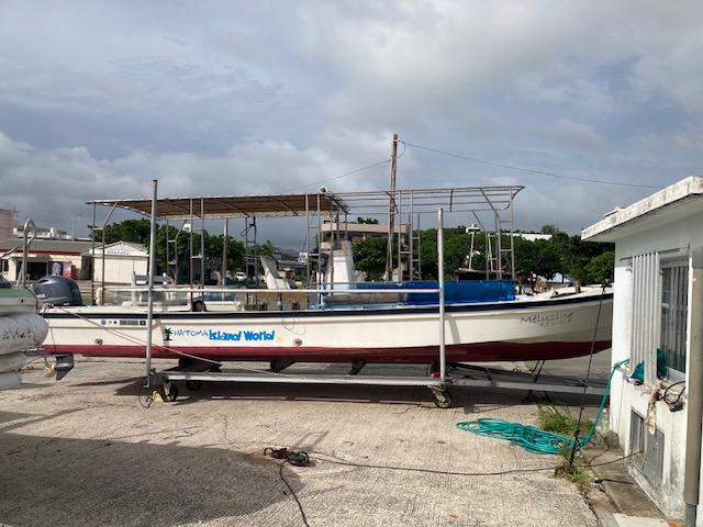 オイル交換をして 船と船艇まで掃除をして補強も行い 船艇塗料を半分塗りました