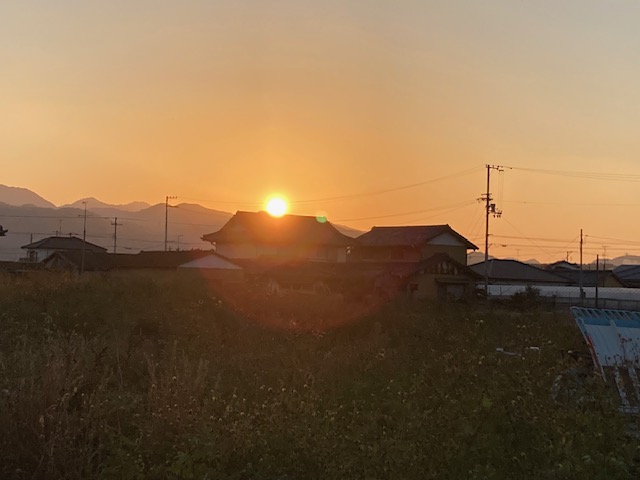 晴れた日は寒くないが 曇りで風があると寒い・・・山に沈む夕陽