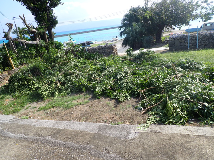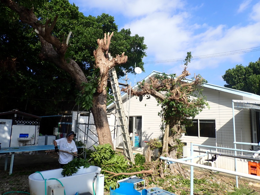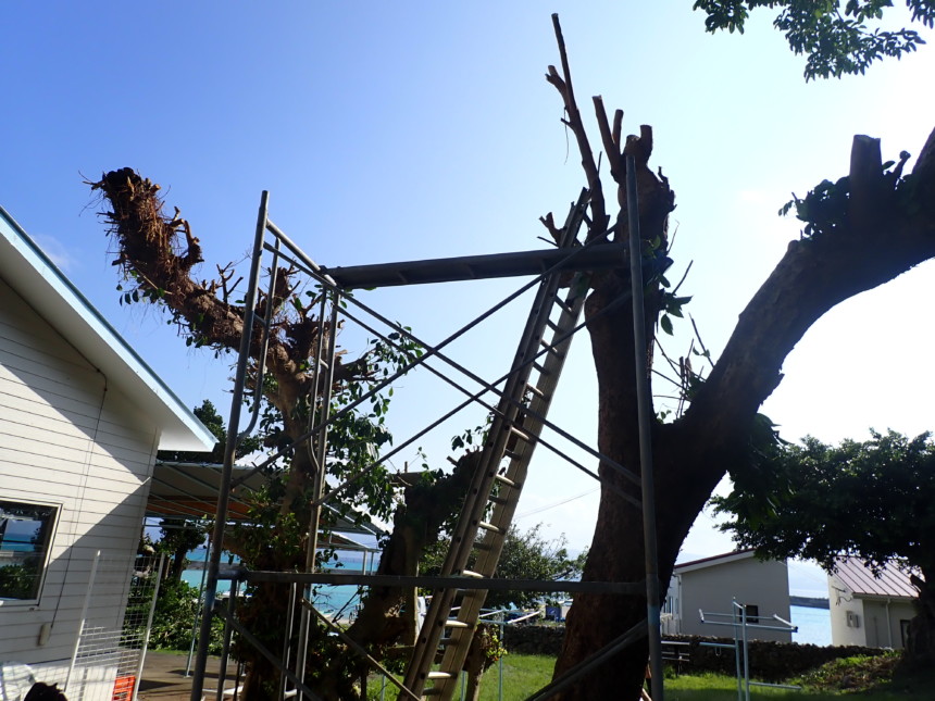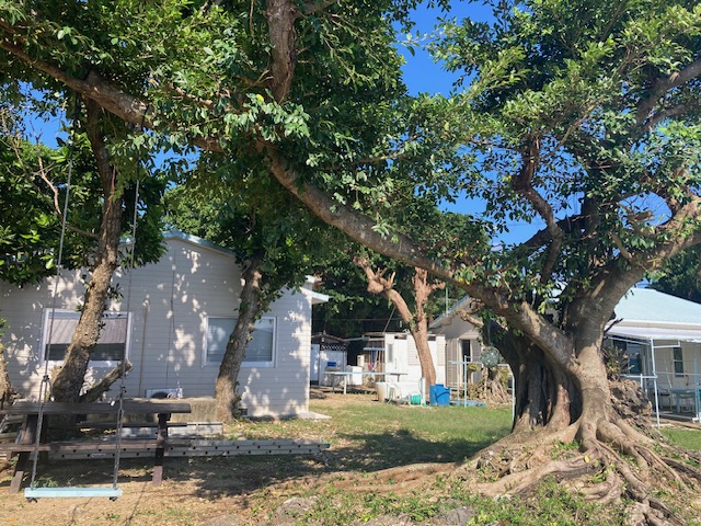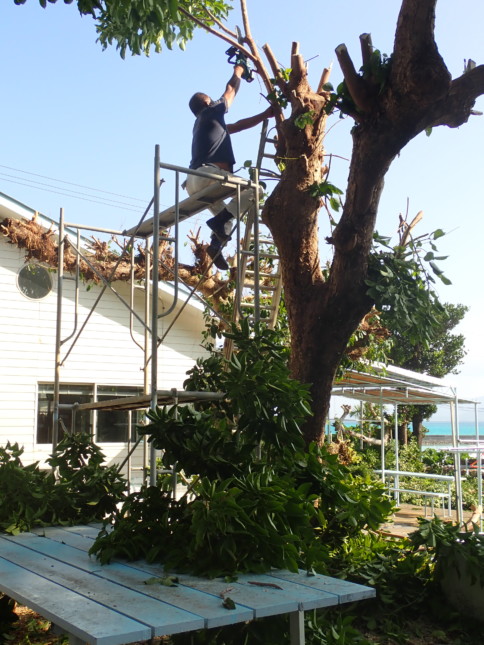 Cafeの裏側( 大きなガジュマル)やペンションの横 西側の木 3本も伐採しないと・・