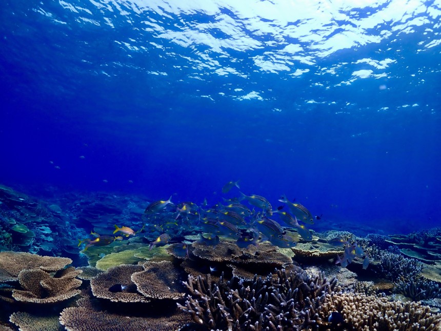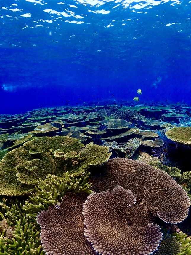 ようやく強く吹いていた南風もおさまりました ゲストは3名様 のんびりシュノーケリング